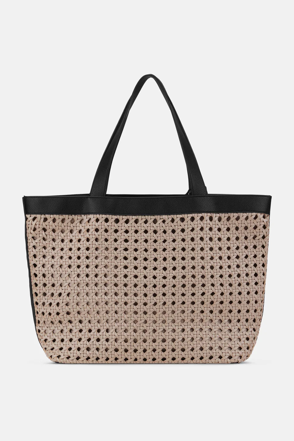 A stylish essential for summer days, this beach bag blends effortless elegance with everyday functionality. Designed in a chic braided pattern inspired by natural rattan, it adds subtle texture and flair to your seasonal look.