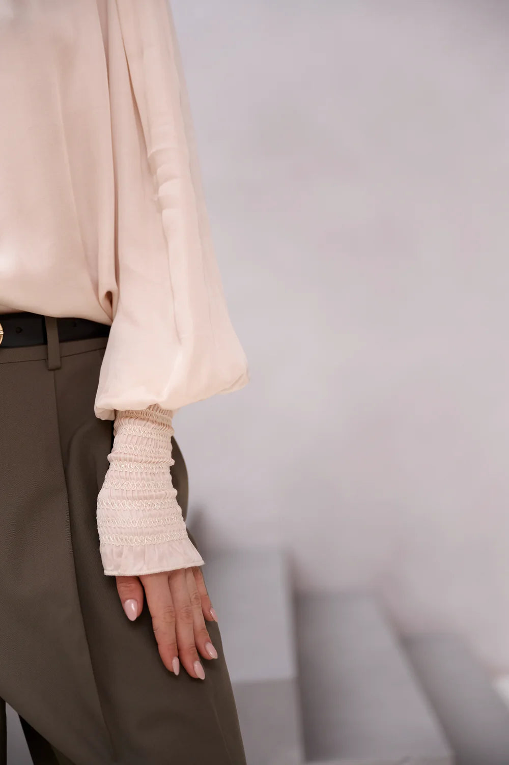 Designed for all-day comfort, the Sofia Shirt is crafted in 100% Modal with a relaxed, true-to-size fit. A smocked front placket adds subtle frill detailing, while the smocked band collar and cuffs introduce texture and structure. Pleated shoulders enhance the structure of the full sleeves without overwhelming the silhouette.