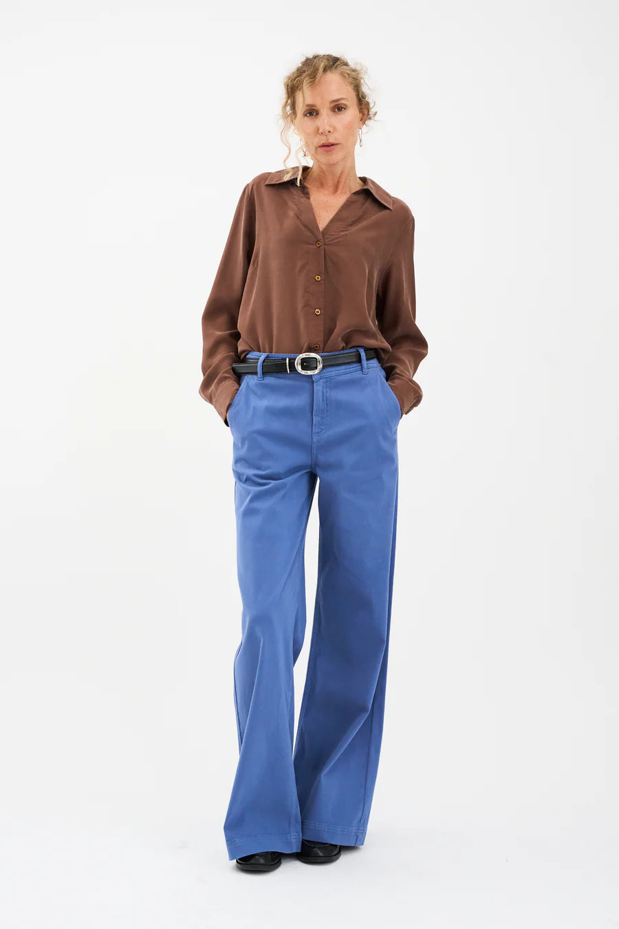 Asta French Jeans in Blue Mist offer a modern flare silhouette with a clean, tailored edge.