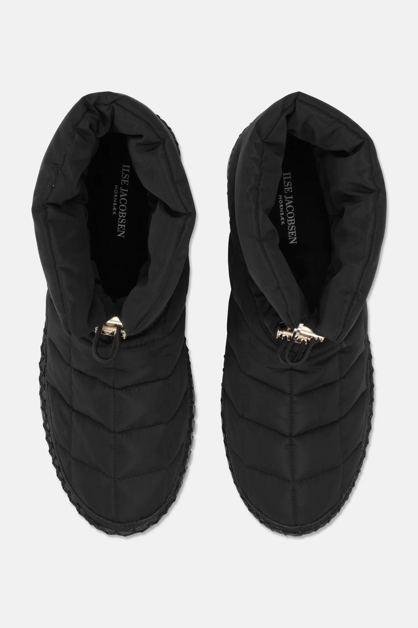 Tulip winter boot with a quilted pattern and a water-repellent surface. Drawstrings at front for adjustments. Warm artificial down padding and microfiber lining for colder days. Resting on a waterproof outsole with match color recycled thread. The insole has padding and support to ensure great comfort.