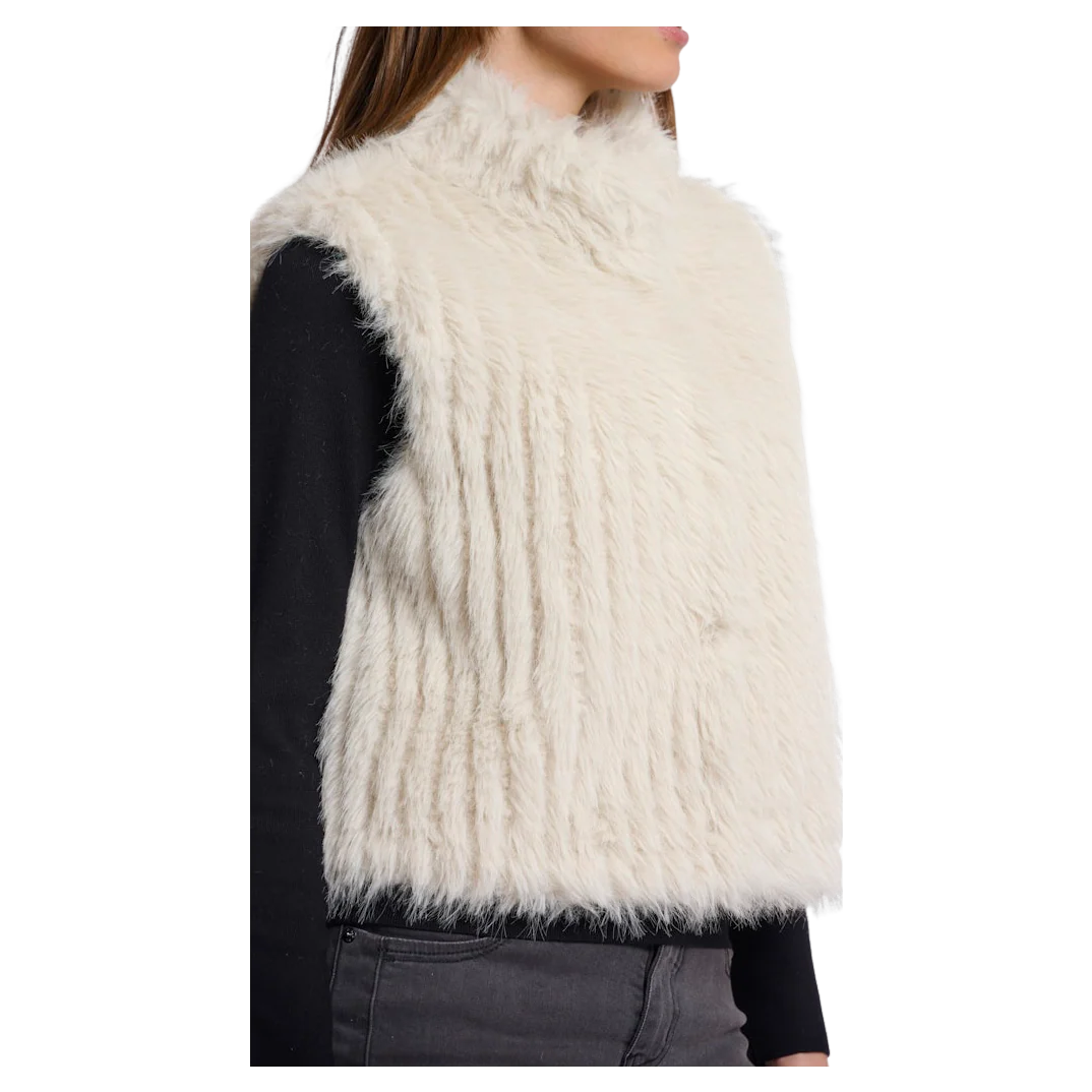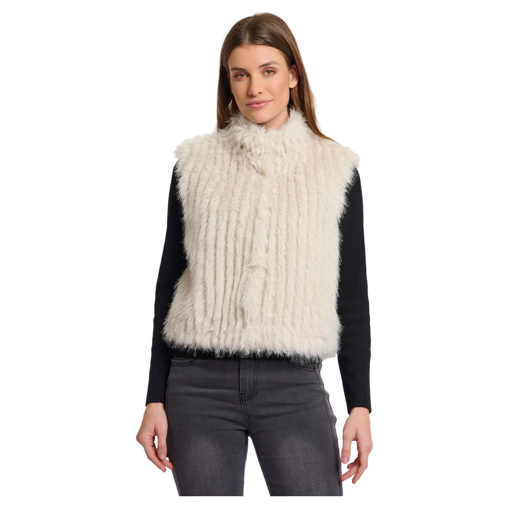 Elevate your outerwear collection with the Rino & Pelle Dava Gilet. This ribbed faux fur design features a high neck for added warmth and style. Ideal for layering over your casual ensembles, it's a wonderful choice for both weekend outings and cosy evenings indoors. Experience comfort and sophistication with this essential piece in your wardrobe.