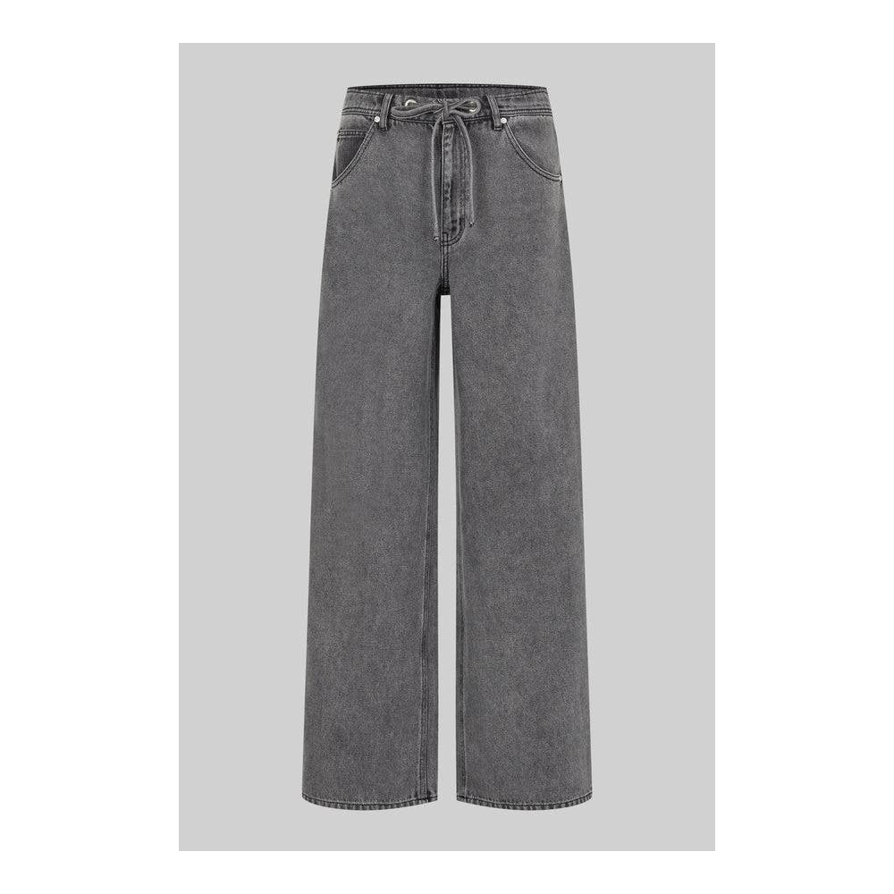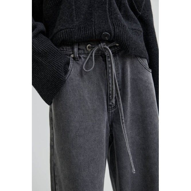 Second Female jeans with belt. The jeans are made in soft, drapy lyocell. Featuring a concealed zip fastening and button at the front and drawstring with tie fastening at the waist. Five-pocket style. Mid waist with loose, straight leg.