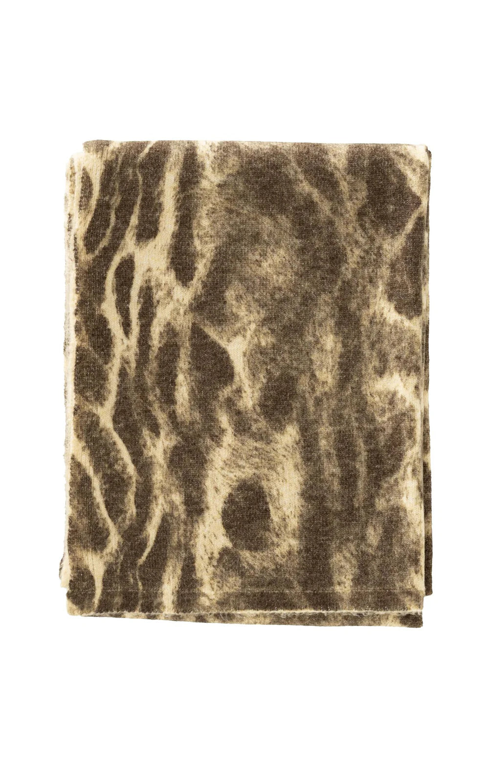 This generously sized scarf is made from a soft, warm fabric with a velvety texture. The abstract animal print in natural and brown tones adds a playful and contemporary touch. Its ample size makes it perfect for wrapping snugly around your neck or draping loosely over your shoulders. Ideal for chilly days.