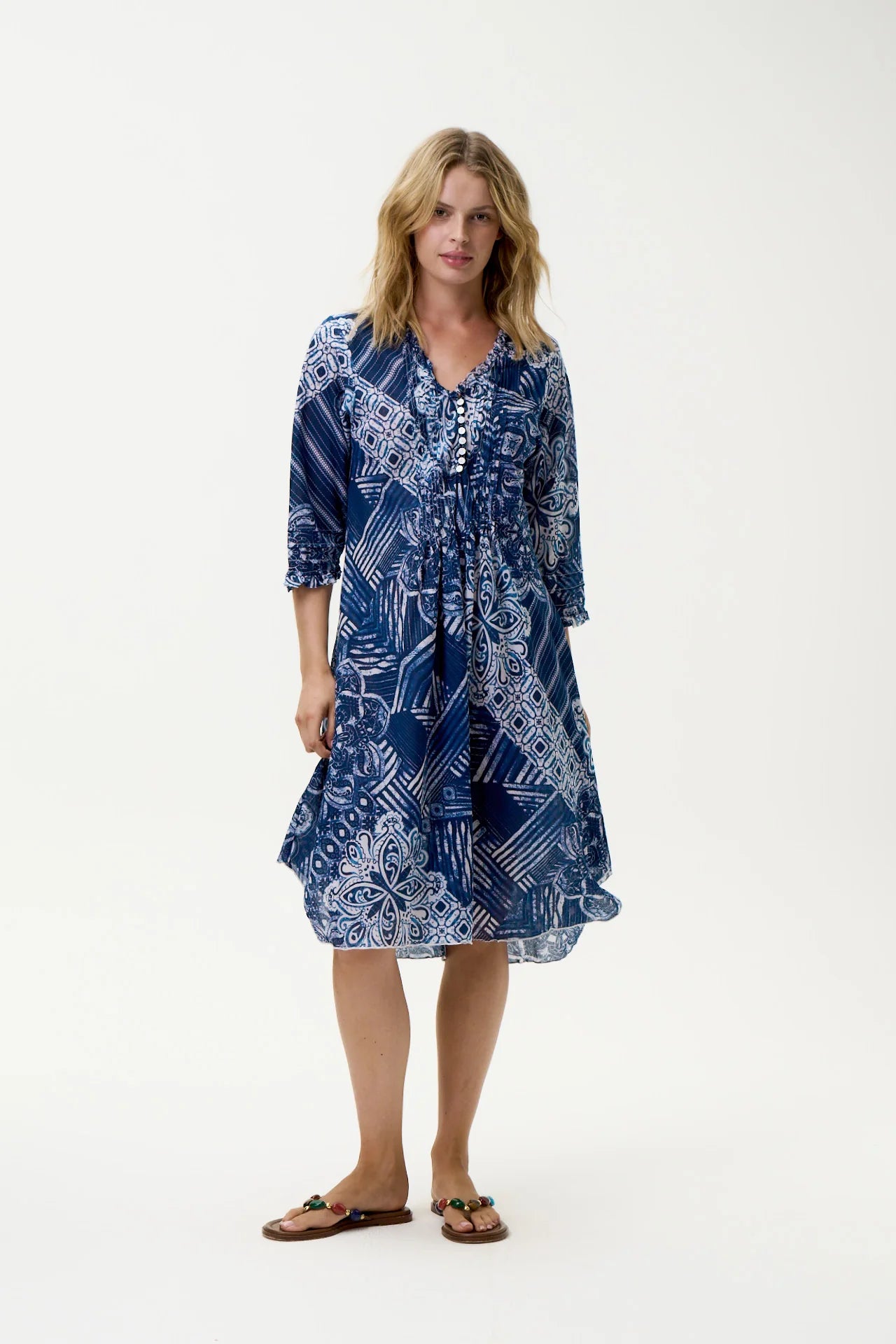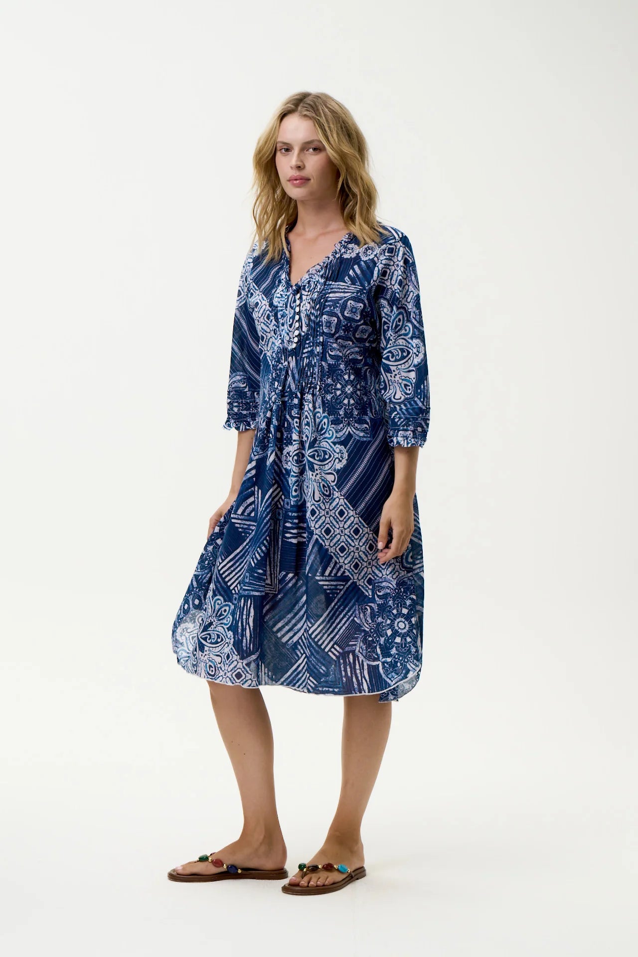 The Middy Poppy is our longest standing and most loved style. A true summer essential, the style is cut from 100% washed cotton and complements all body shapes with a flattering, looser silhouette. It’s finished with delicate raw ruffles around the neckline and sleeves and sits just below the knee.